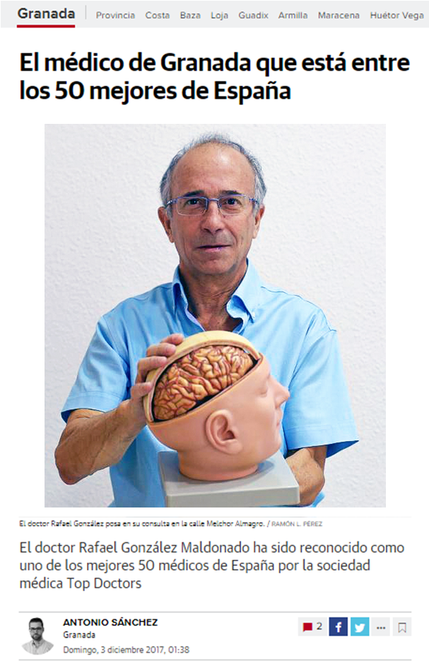 Autor de libros y publicaciones médicas, combina rigor científico con un trato cercano. Galardonado con los Top Doctors Awards (2017) y reconocido como “Neurólogo de Honor” (2025) por la Sociedad Andaluza de Neurología.